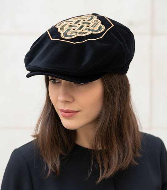 Coppola modello 'Pirandello ' in velluto liscio con Ricamo Ragazza con l’orecchino