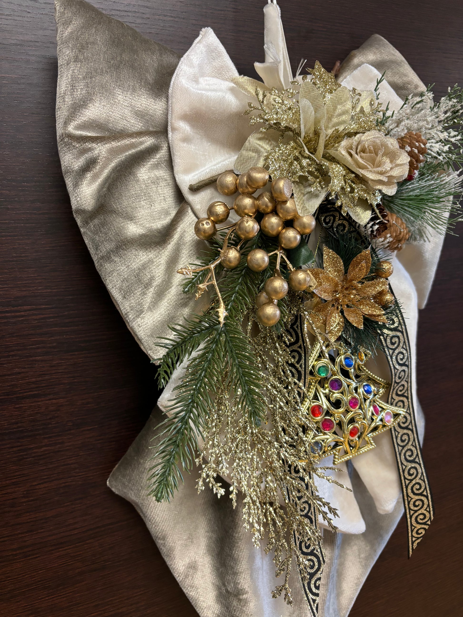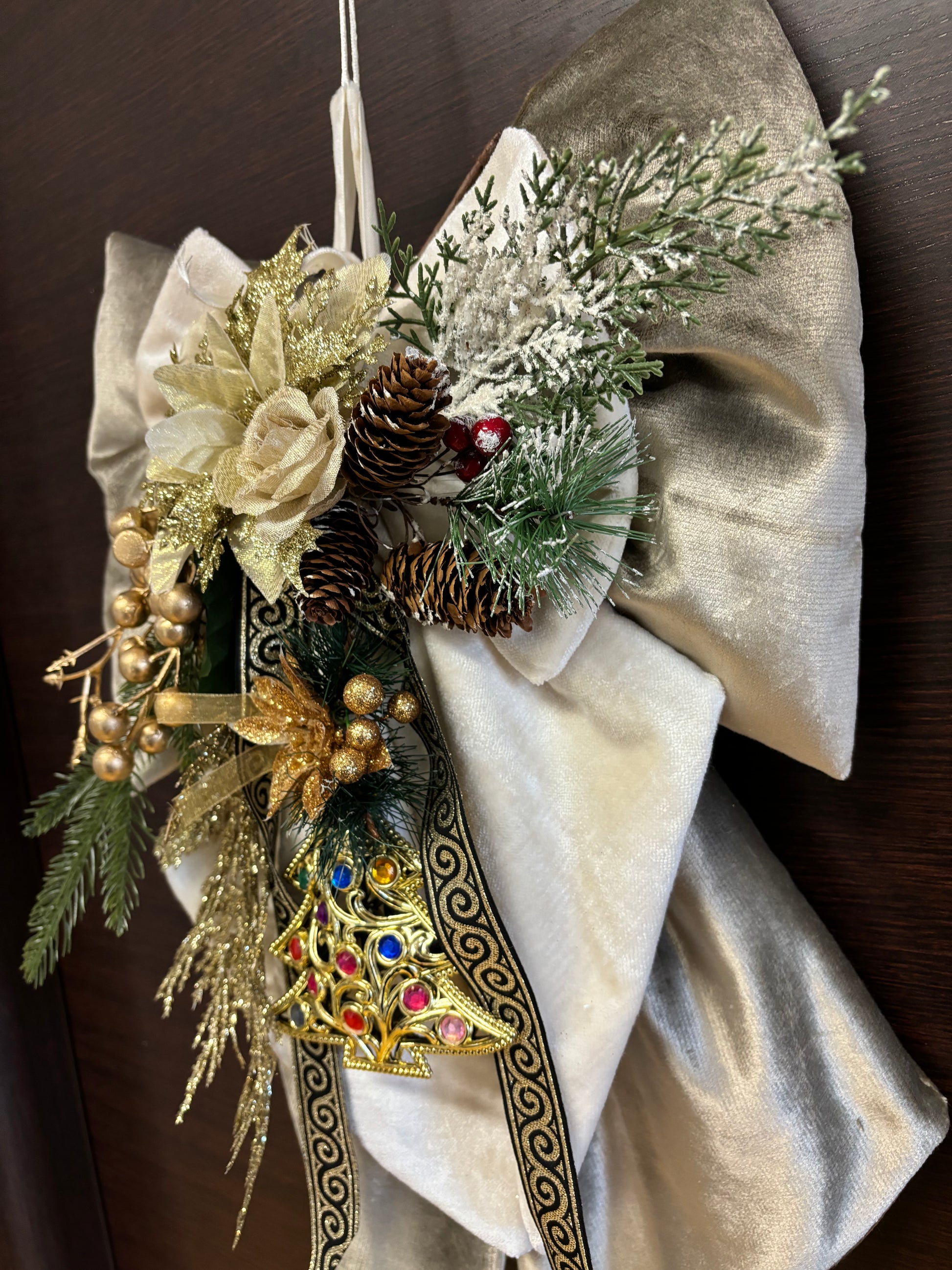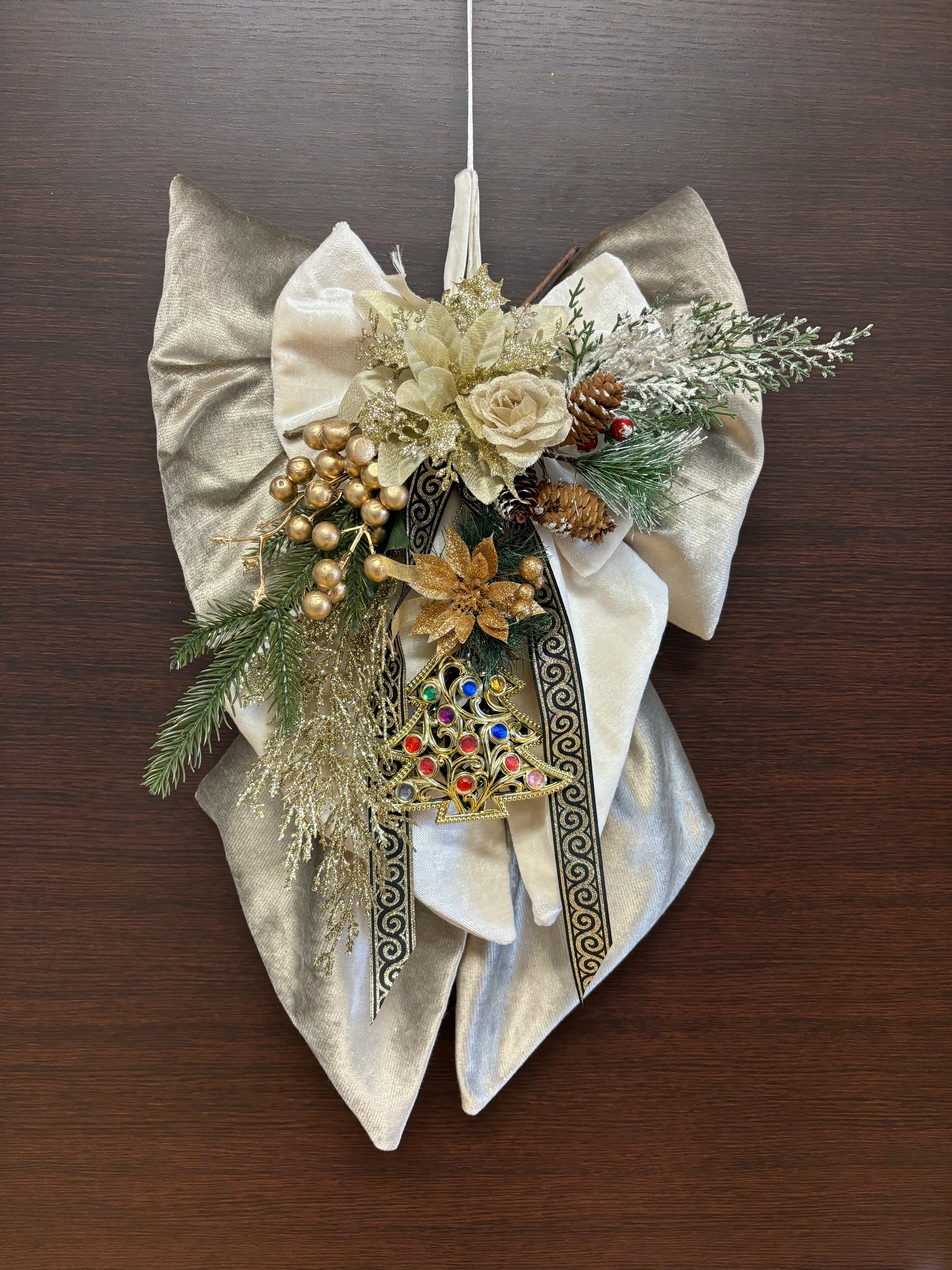 Il fiocco natalizio fuoriporta doppio tessuto che rende unica e originale la decorazione della tua casa.