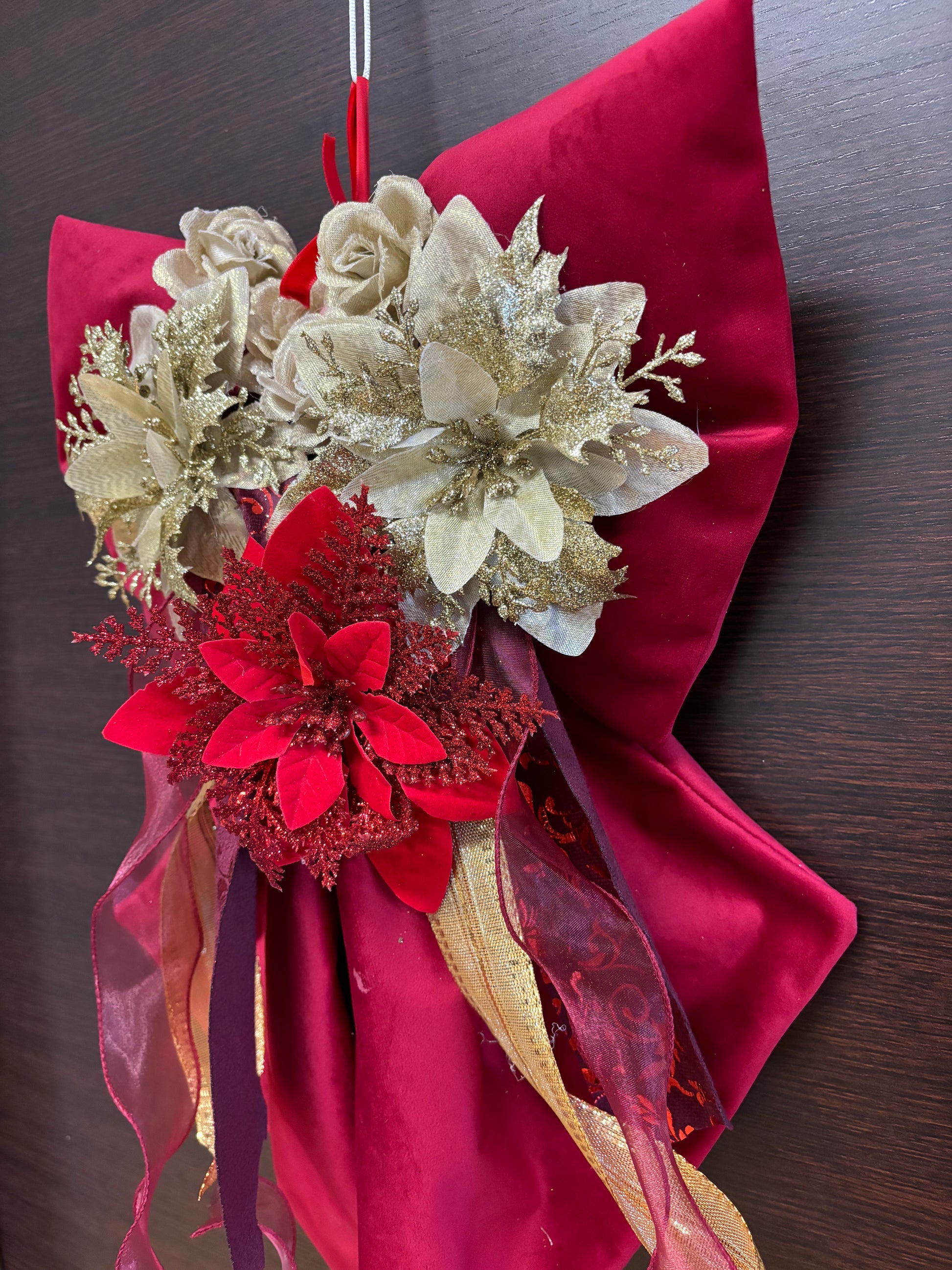 Il fiocco natalizio fuoriporta rosso che rende unica e originale la decorazione della tua casa.