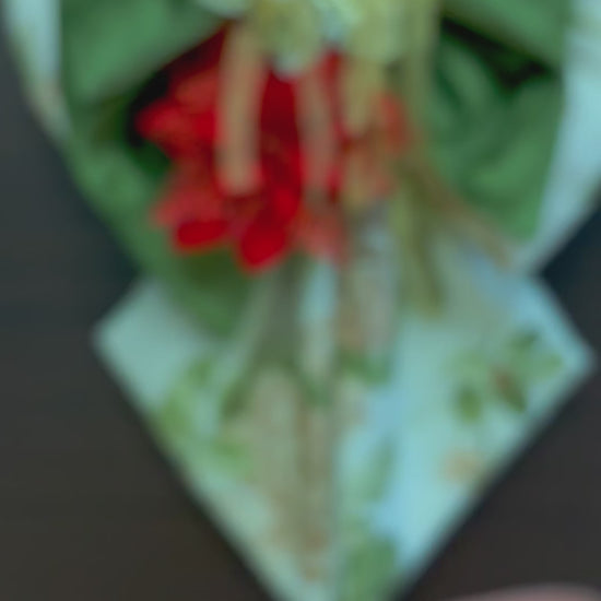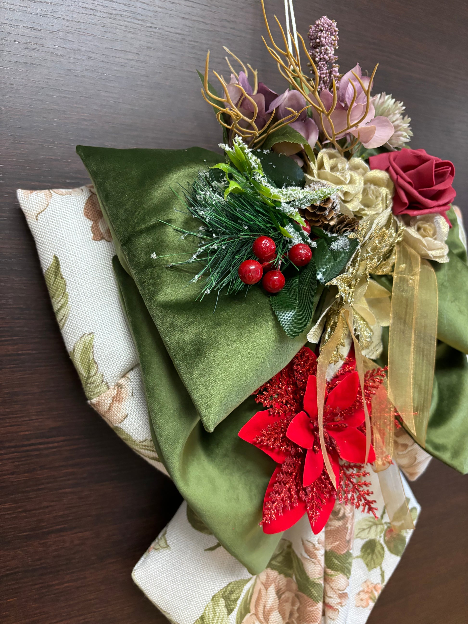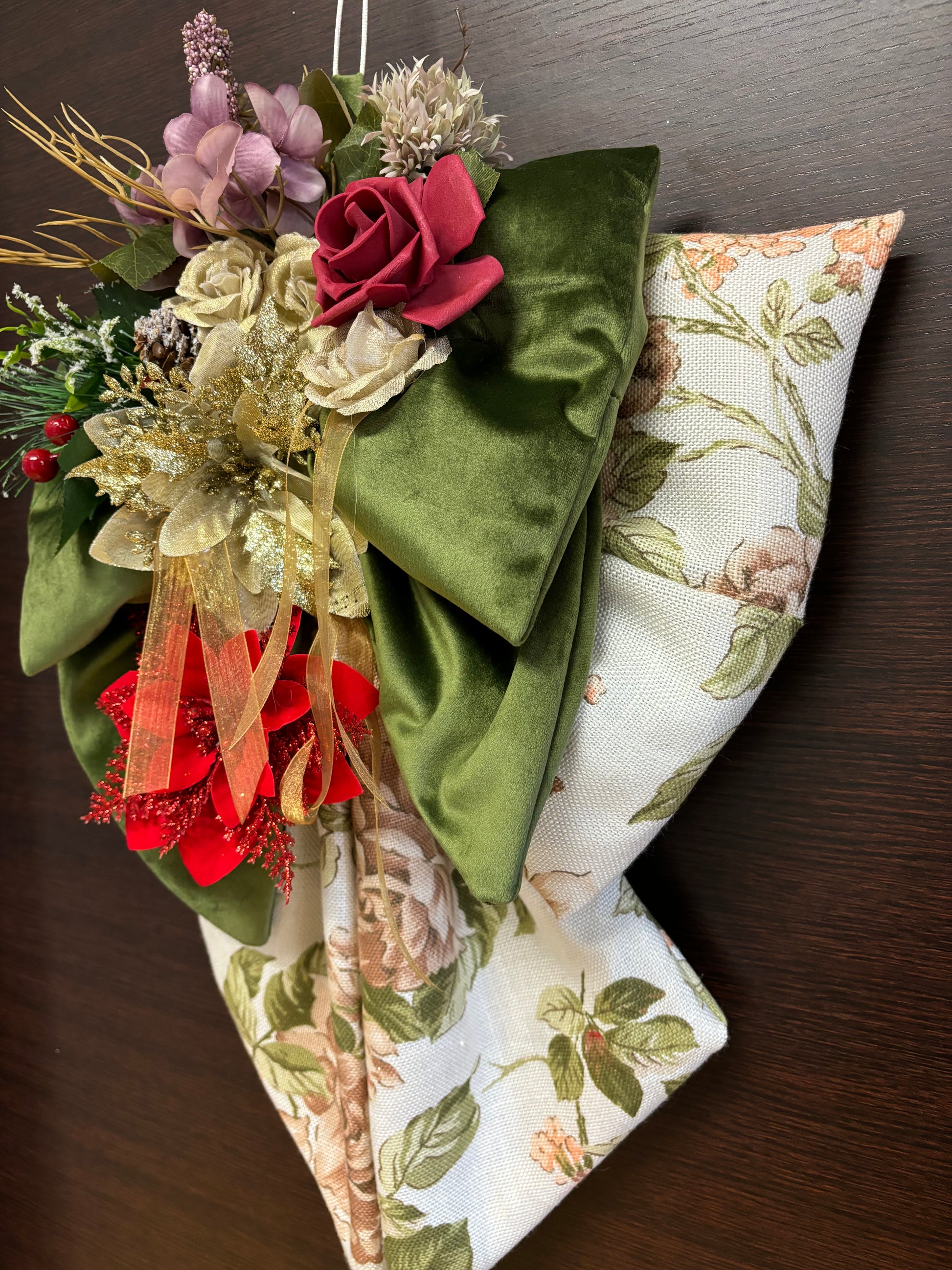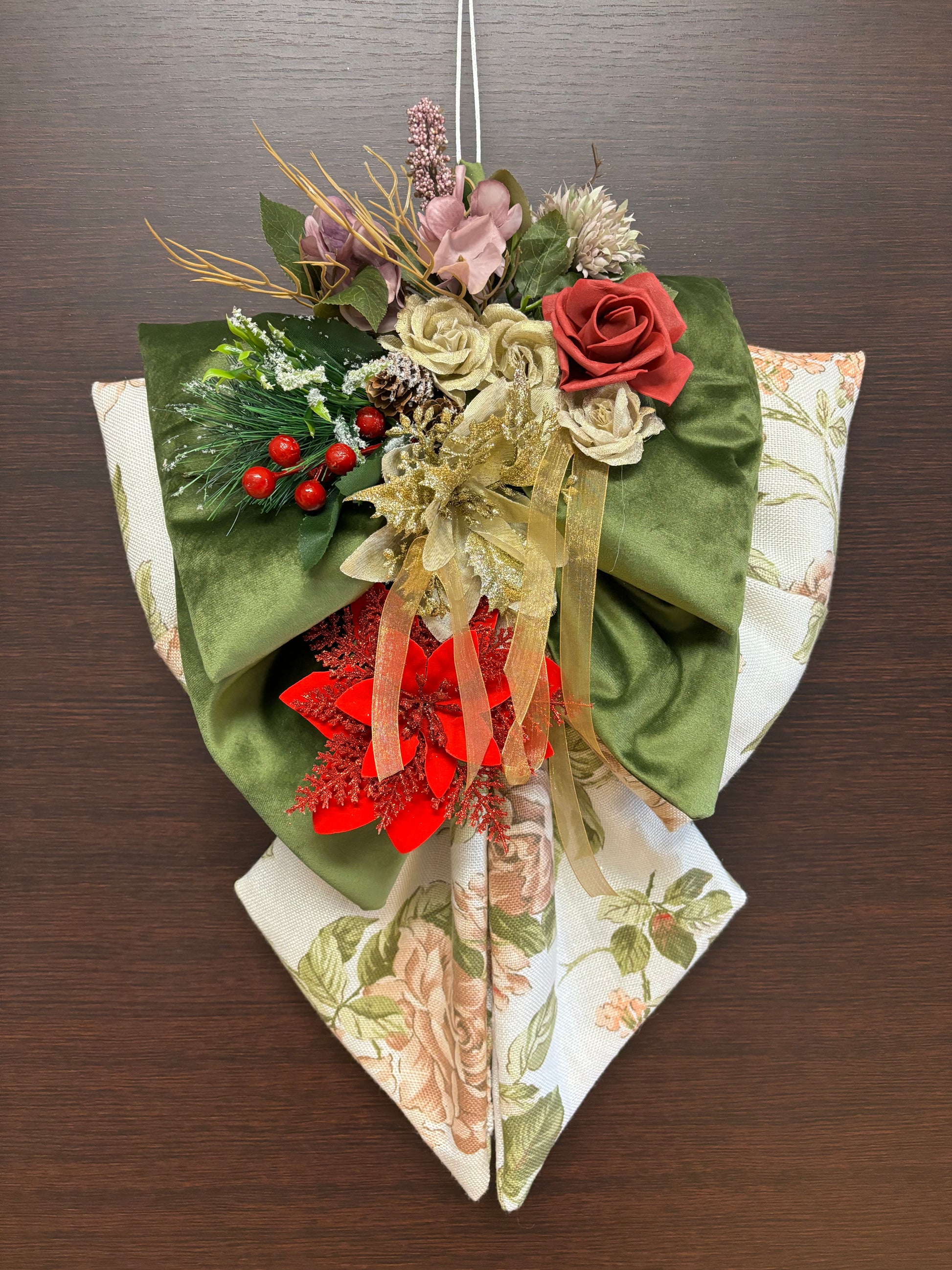 Il fiocco natalizio fuoriporta in velluto verde con dettagli fiorati  che rende unica e originale la decorazione della tua casa.