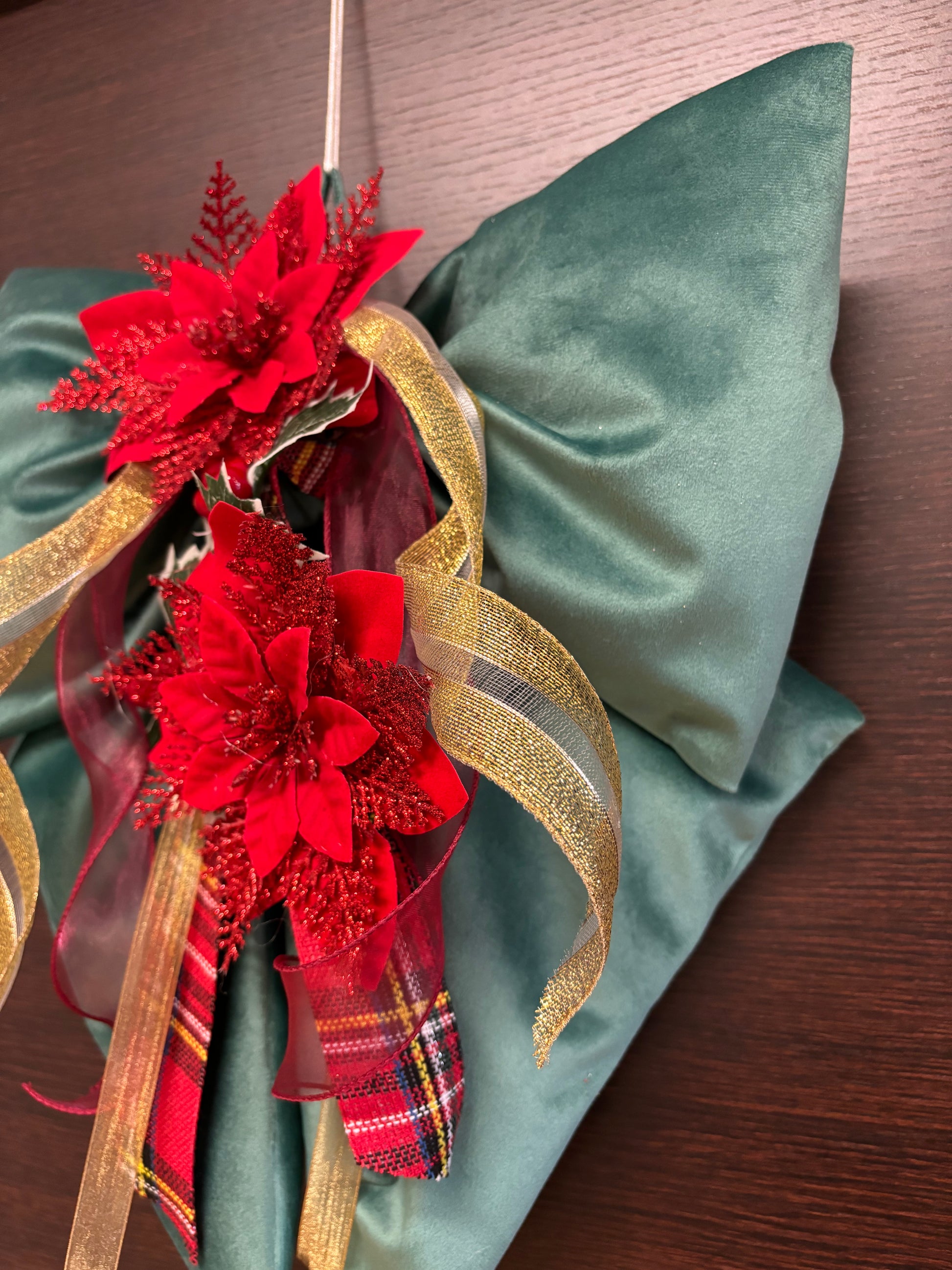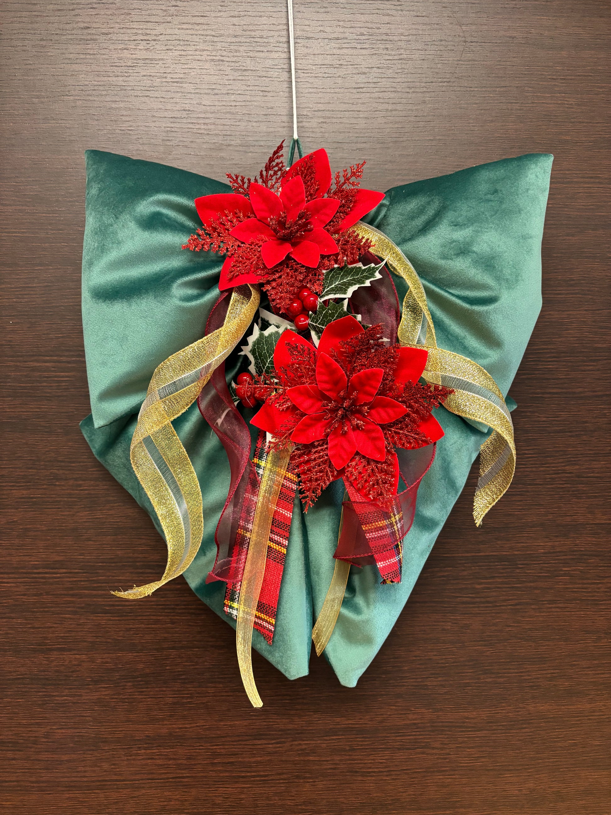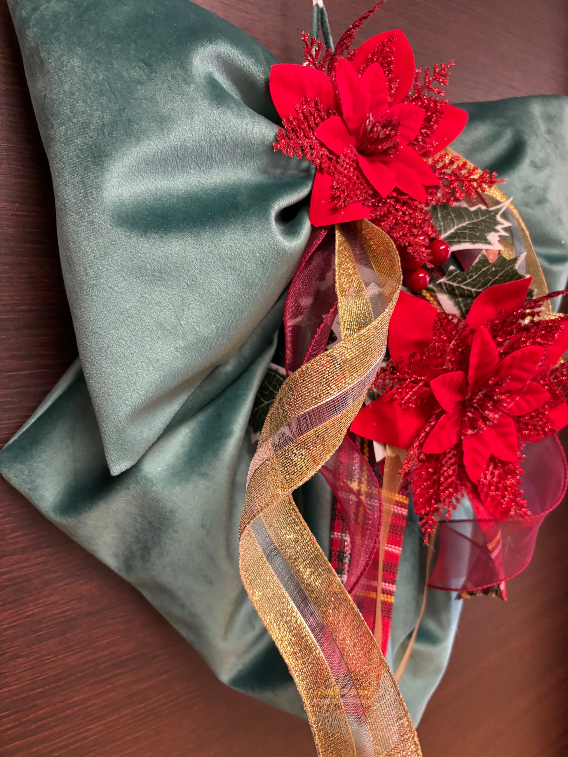 Il fiocco natalizio fuoriporta in velluto verde che rende unica e originale la decorazione della tua casa.